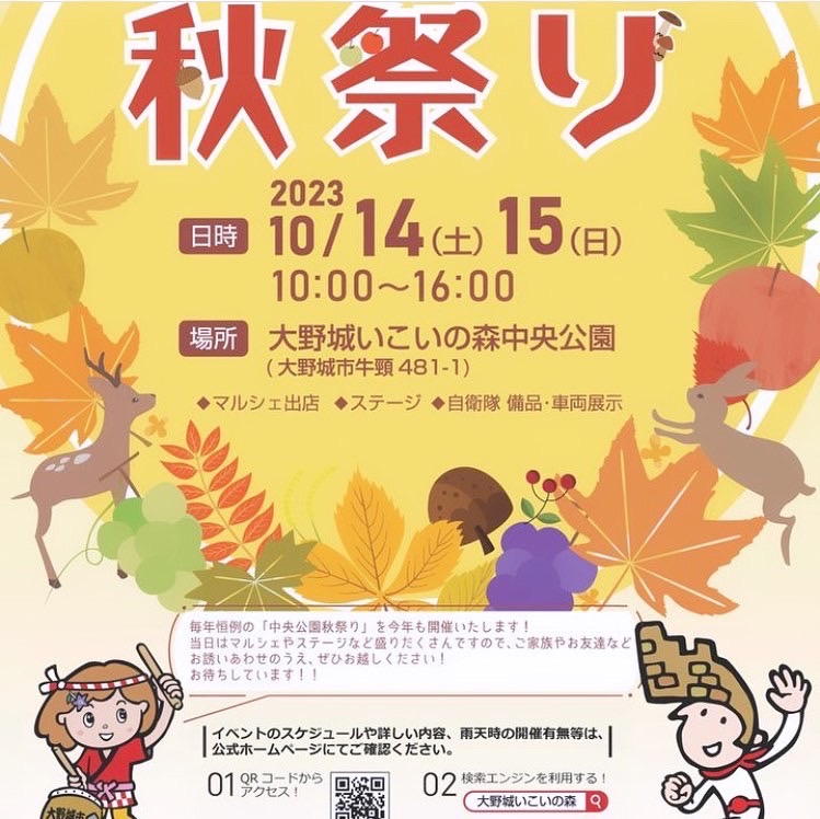 【登☆ジョー情報‼】10月14日(土)、15日(日)は、大野城いこいの森秋まつり